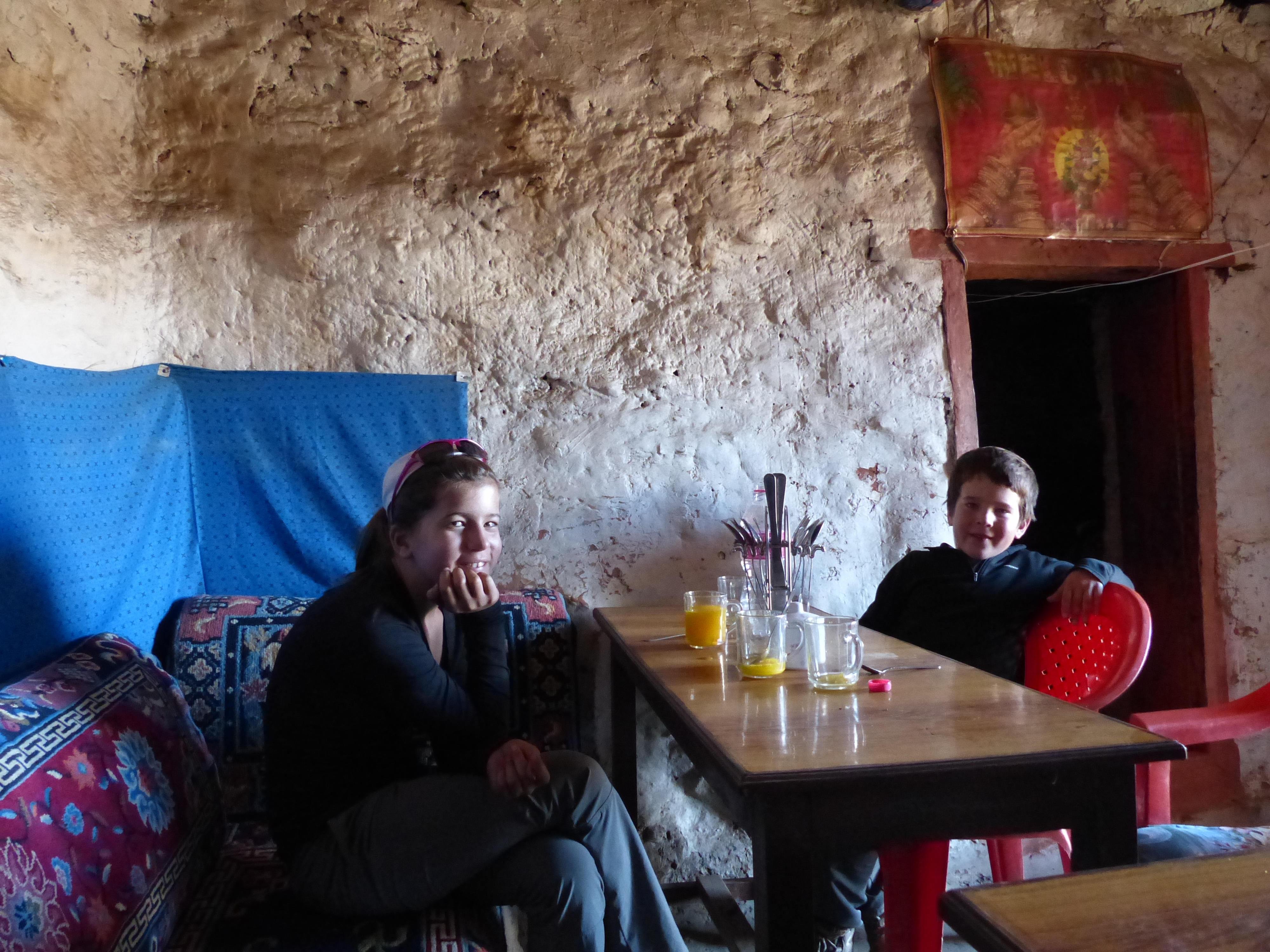 Looking for alternatives, he found a guy with a couple horses we could hire. Plunking Mac and Lucia (just because she likes to ride) on horses, we headed up our final pass of the day. Like the day before, this was a long grinding uphill on loose gravel. The path climbs steeply across a sidehill. Even Colburn who, in nearly 20 years of hiking together, has never once said to me that a trail was too steep, said, “I don’t know if I can go over one more f#$^&*@ pass like this!” I was glad that the kids were on horses because I was so distraught, I don’t know that I could have possibly helped them through it. It was a kind of self-preservation thing – at that moment, I could only think about myself and getting enough air in to my wheezing lungs to make it up the hill. Nine and one half hours later, we made it to Tserang, our town for the night. Again, feeling defeated and truly wondering where the fun was, we collapsed in to bed for the night.