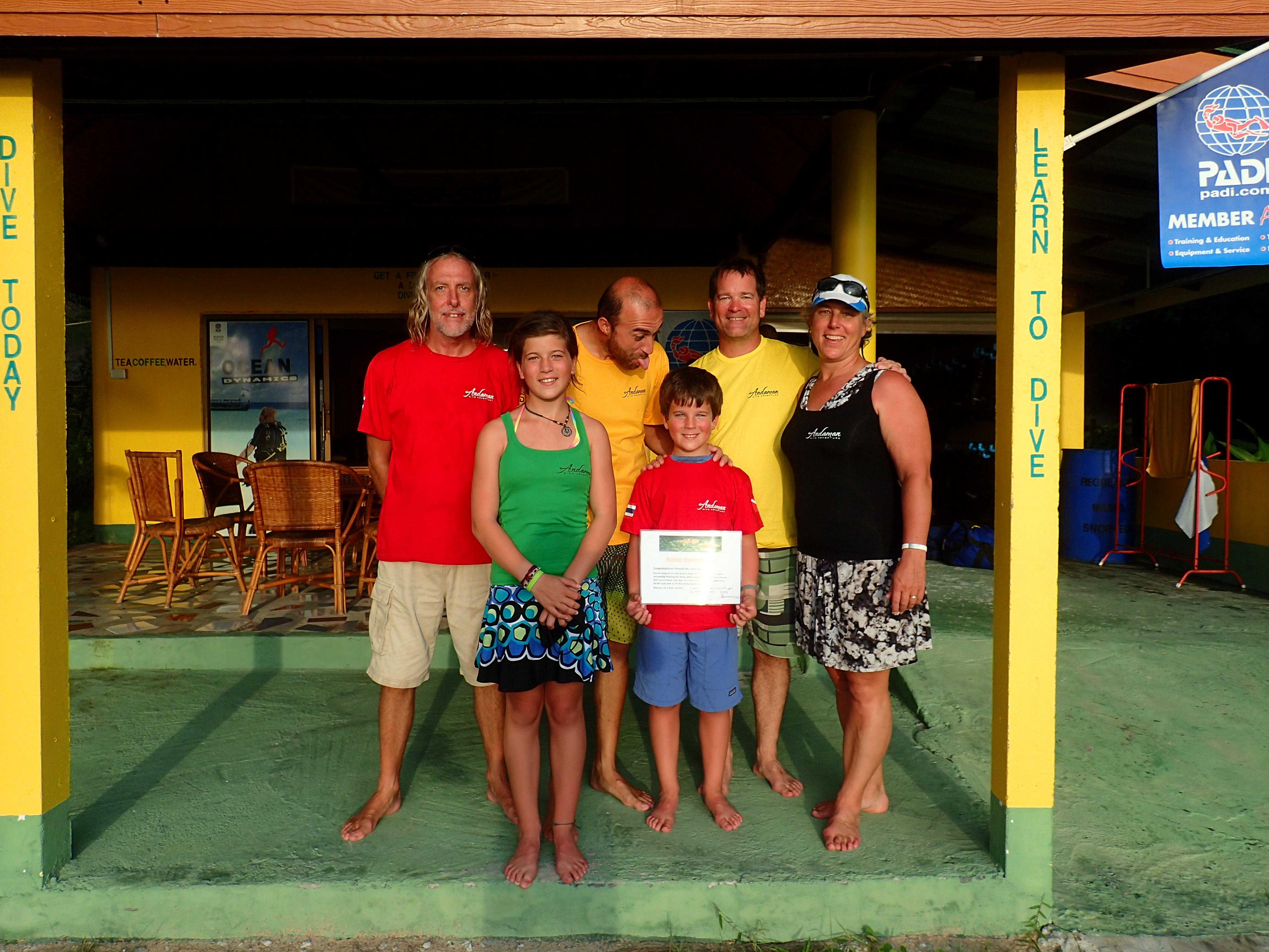 Within minutes of meeting our phenomenal dive instructors, Steve and Harun, we all felt relaxed and comfortable about what we were going to do. Both men are casual yet very professional, genuinely caring, and excellent teachers. A quick review of essentials and some time practicing underwater skills like equalizing your ear pressure, clearing your mask of water and retrieving your regulator should it fall out were accomplished quickly. Harun said that he knew the kids would be fine when he told them to watch his demonstration of regulator retrieval but instead of watching they copied him step for step as he was showing the skill. As the lesson came to a close, he showed us how to blow bubble rings underwater, quickly creating a new obsession for us all.