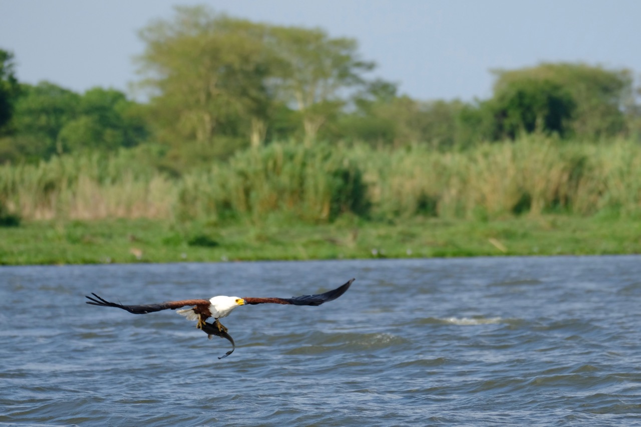 Our afternoon safari was a boat trip up the Shire River (pronounced she-ray). Before we even boarded the 20’ public launch, we were surrounded by buffalo, hippos, a fish eagle and even a lone elephant munching on the tall grass. The guide quipped, “Well, guess you’ve seen everything now so we don’t need to go anywhere!” Heading up the river we were enchanted to see many more hippos, herds of elephants including a young male group frolicking in the river, crocodiles, a fish eagle hunting, and of course, more hippos than one can count. All-in-all it was an extremely successful 24 hours of game viewing despite the absence of predators.