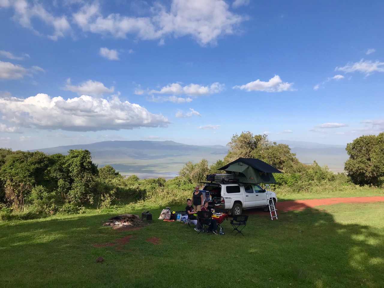 Our first night was at a public campsite on the rim of the Ngorogoro Crater. The site itself is large grassy area just off the main road. There are ablution blocks (shower/toilet), a secured camp mess area to use in case of animals wandering through, and a few fire rings. We were greeted by Saipi Sangay, the attendant on duty for the afternoon. Although limited in his comfort with English, he was a great help to us setting up camp and learning about the area. There were several overlanding groups in the camp as well, so the camp was lively with international conversation. We met a family (parents and 20-something daughter) from Poland who wondered how we could have the kids out of school for this long, a Spanish/Dutch pair who thought what we were doing was crazy but inspiring, a young woman from the US who hopes to write a book about traveling to all of the continents before she is 30 and a quiet Australian (unusual in itself) who gave us advice on how to circumnavigate Australia.